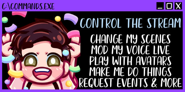 Channel Point Redemptions have moved! They are now located in our Virtual Shop. Use these to change our scenes, apply voice mods and a whole host of other things! Check your points with the command !account or by connecting to the bot.