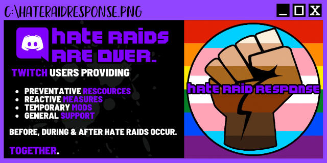 Community is everything to us. Here's more of our favorites! Hate Raid Response is our most important push right now: